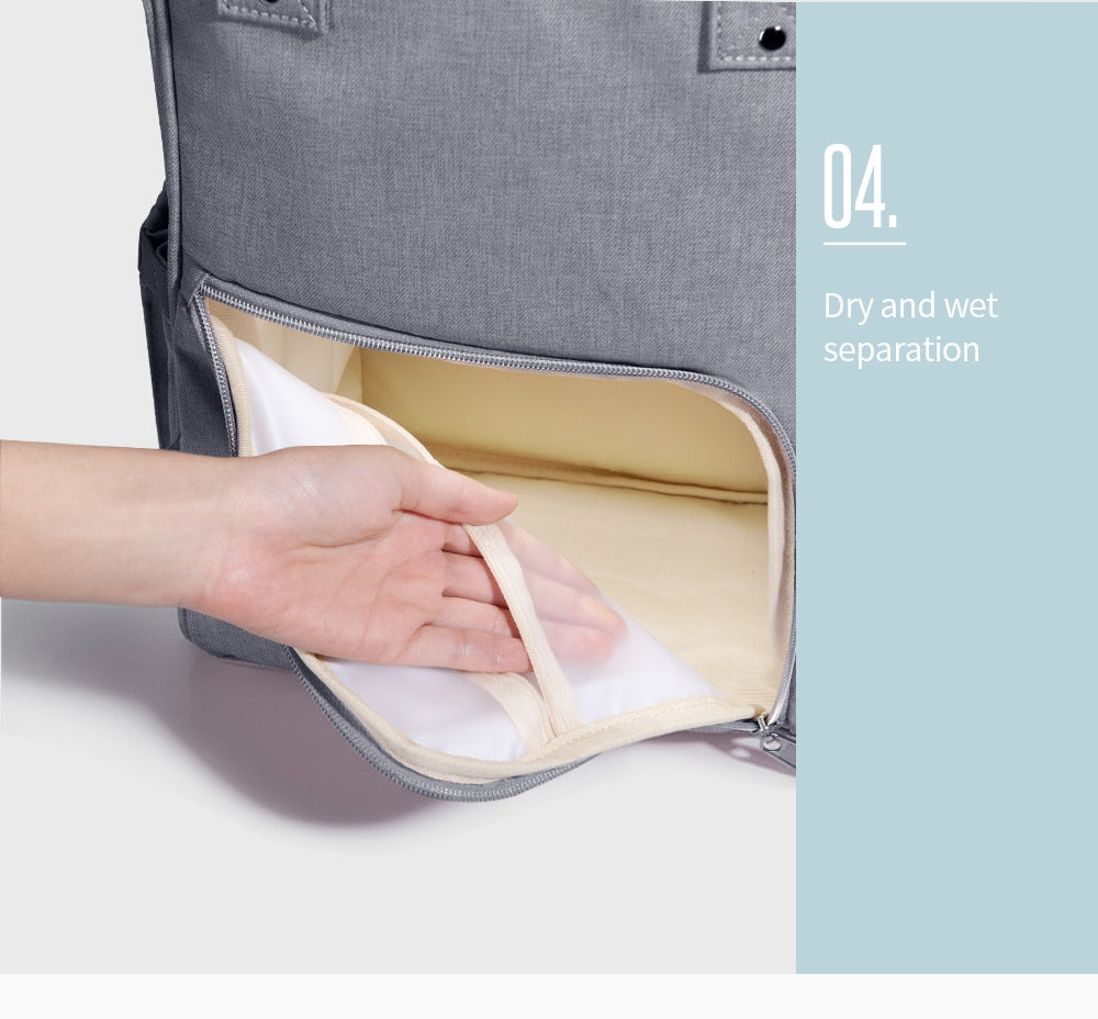 - Divided partitions: Stay organized when out and about with this diaper bag that features separate partitions and a wide open design.